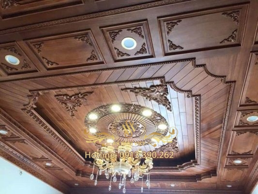 Trần gỗ nội thất phòng khách, sang trọng, tinh tế tại Hải Phòng